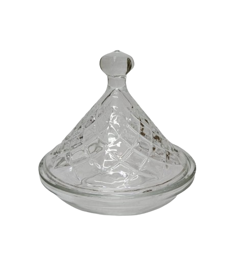 טאג'ין זכוכית דגם מעויינים - מתאים לעיצוב וקישוט חינה, מימונה ואירועים. *הסוכריות להמחשה ואינן כלולות