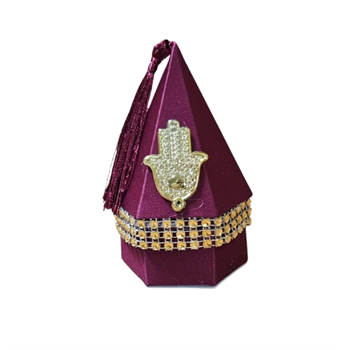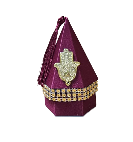 טאג'ין מהודר לעיצוב שולחן צבע בורדו בעיטור חמסה זהב