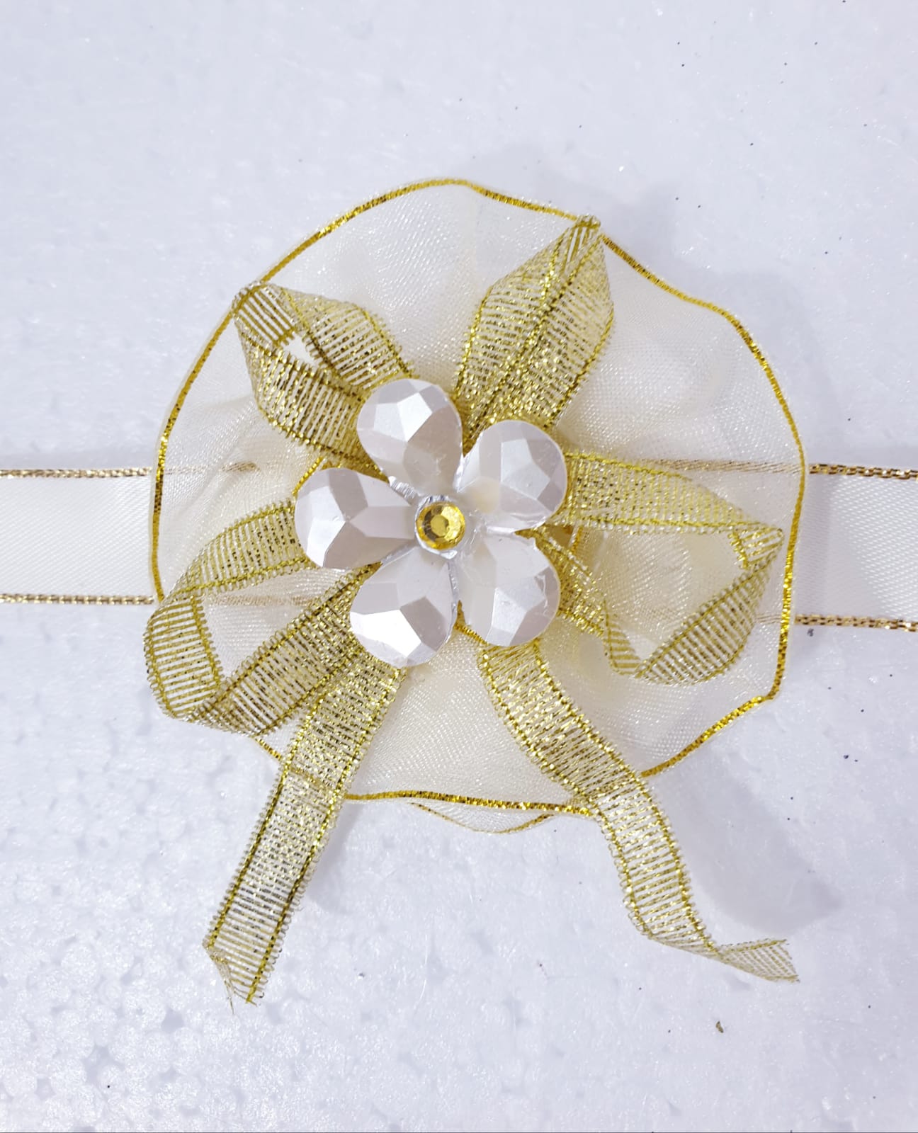 כרית מהודרת הנצמדת ליד לעריכת טקס החינה. עיטור פרח לבן וסרט זהב. סרט לקשירת הכרית על היד. כולל 10 כריות יד צבע: זהב