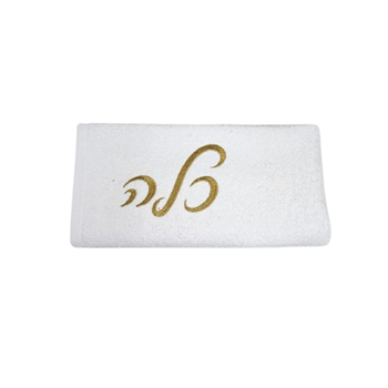 מגבת ידיים לבנה איכותית מבד 100% כותנה. רקמת "כלה" בכתב יד מעוצב בצבע זהב. מתנה מושלמת לסלסלת מתנות לחינה ולמקווה.