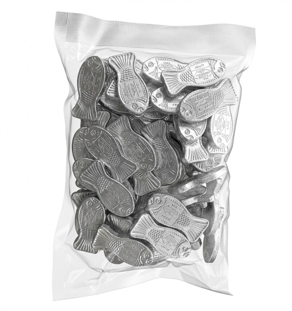 מטבעות בטעם שוקולד בעיצוב דגי כסף. פרווה בד"ץ בית יוסף.