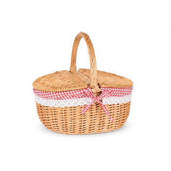 סלסלת קש לפיקניק, איכותית עם ריפוד בד משובץ אדום-לבן עם סיומת תחרה. סגירה באמצעות 2 כנפיים - כנף בכל צד, ידית קשת לאחיזה נוחה. לצילומי טראש לפני החתונה, לפיקניק בטבע וכאביזר לצילומים שונים.