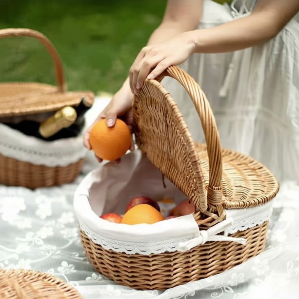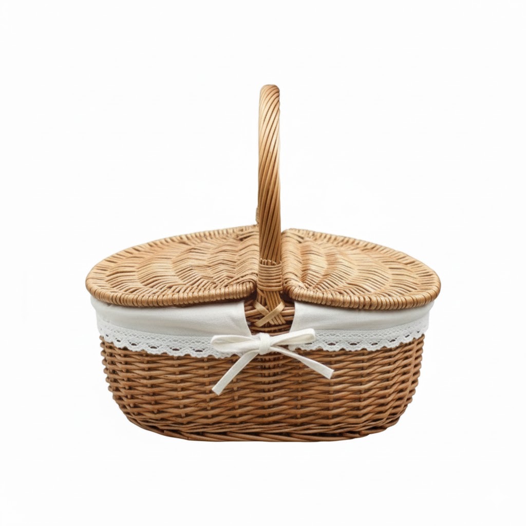 סלסלת קש לפיקניק, איכותית עם כיסוי פנימי מבד בצבע לבן-שמנת. סגירה באמצעות 2 כנפיים - כנף בכל צד, ידית קשת לאחיזה נוחה. לצילומי טראש לפני החתונה, לפיקניק בטבע וכאביזר לצילומים שונים.