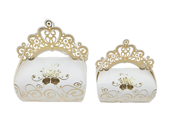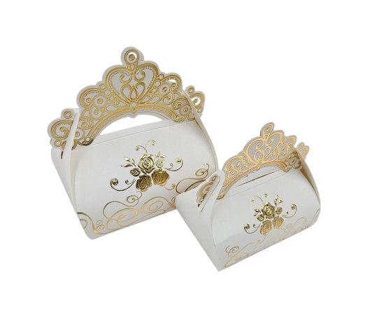 קופסת קרטון מהודרת דגם רויאל למארז מתוק באירוע שלכם, למתנות לאורחים / מזכרות לאורחים. מגיע שטוח - הרכבה קלה בקיפול.