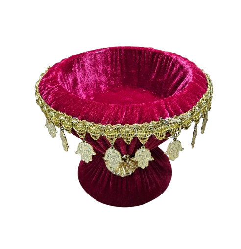 קערה לטקס חינה דגם חמסה יחודי מפואר ומהודר. מקושט בתיליוני חמסה בצבע זהב.