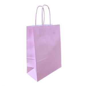 שקית נייר עם ידית מגולגלת צבע ורוד 16X22X8 סמ