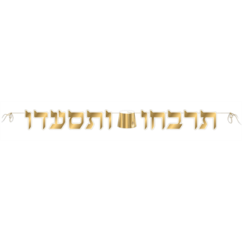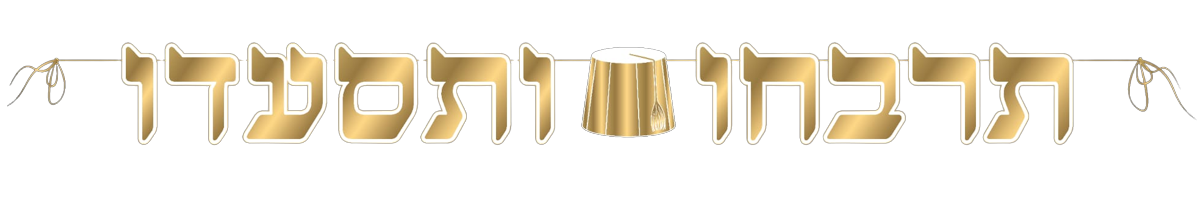 שרשת לתלייה (כמו שרשרת דגלים) עם אותיות היוצרות כיתוב "תרבחו ותסעדו" ותרבוש באמצע.