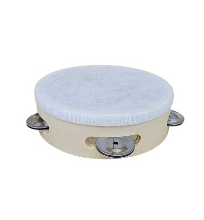 תוף מרים בגוון עץ טבעי עם כיסוי בצבע לבן ומסביב פס בד בצבע לבן. מידות: 15 ס"מ (קוטר)