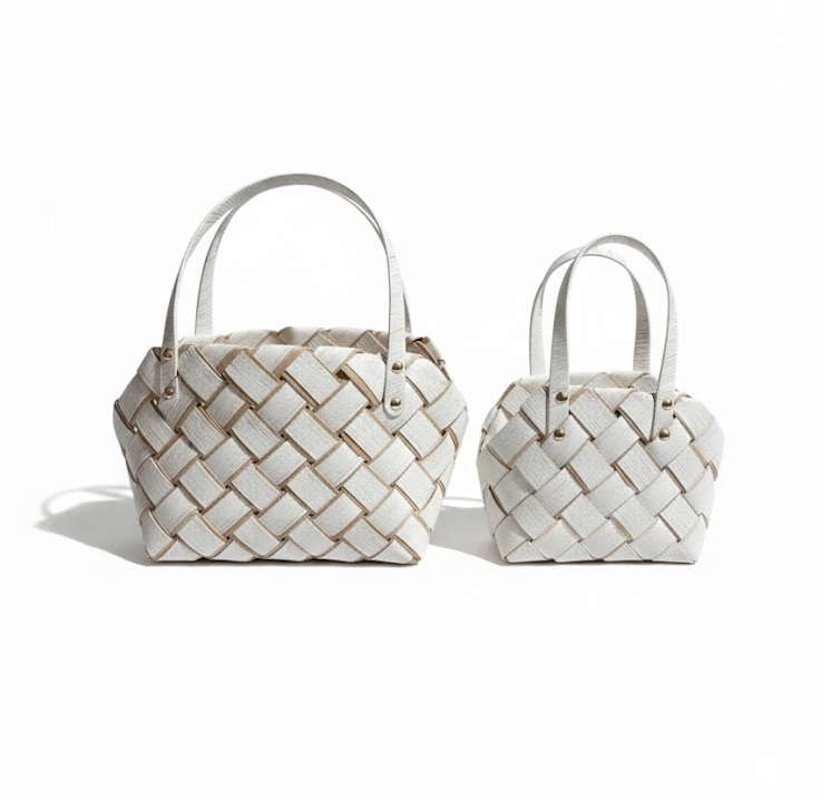 זוג סלי / תיקי קש עם ידית נשיאה למארזים יוקרתיים לחגים, מארזי מתנה ושי.