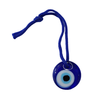 תליון זכוכית נגד עין הרע לקישוט ועיצוב. גודל 2.5 ס"מ, מגיע עם חוט כחול תואם. נמכר במארז 10 יחידות