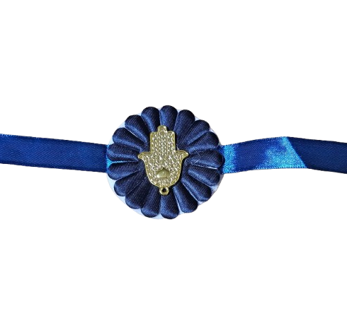 ראשי    /   אביזרים לאירועים    /   10 כריות יד לחינה עם חמסה זהב וסרט כחול כהה