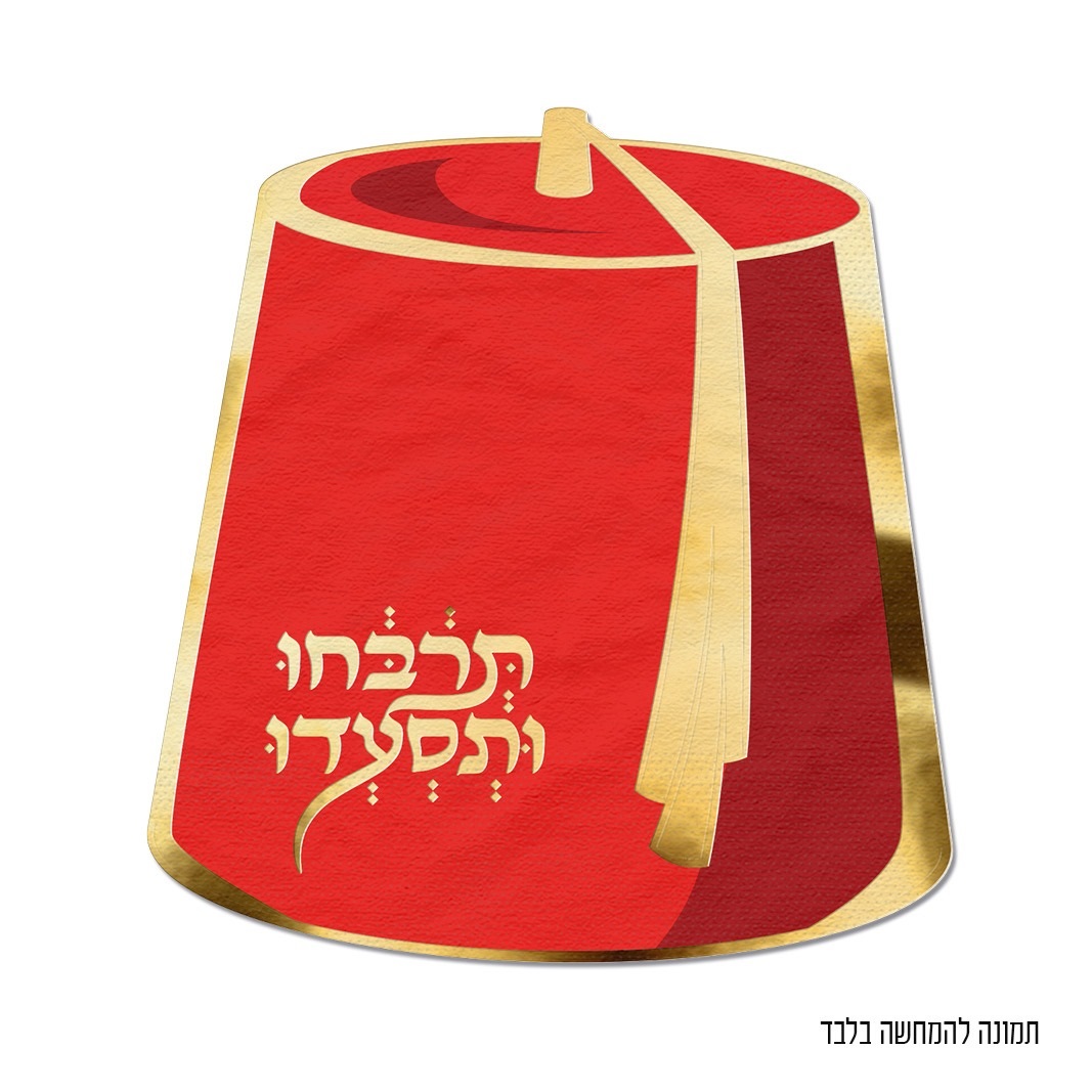 מפיות נייר בצורת תרבוש מרוקאי עם כיתוב "תרבחו ותסעדו" - לעיצוב שולחן מימונה או חינה.