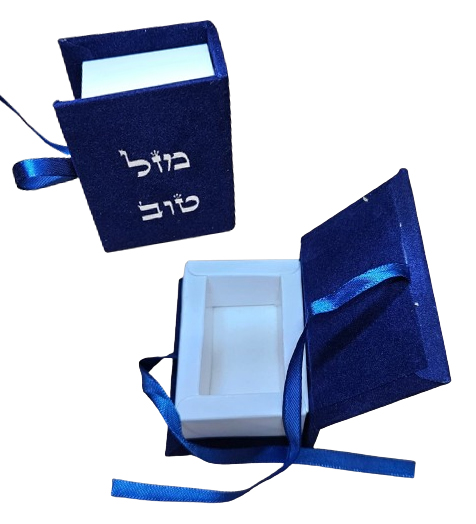 קופסא דגם קטיפה ספרון מזל טוב כחול/לבן למזכרת לאירועים בר מצווה ועוד... מזכרת מקסימה לאורחים שהשתתפו באירוע שלכם!